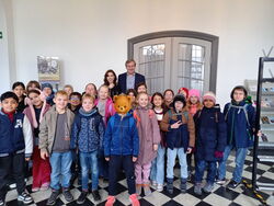 Gerade als wir gehen wollten, hatten wir Glück. Da kam das Ehepaar, das die Bilder verliehen hat. Wir durften sogar ein Foto mit ihnen machen.