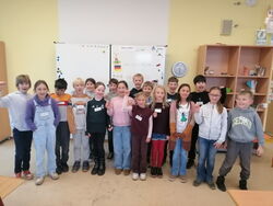 Drei Tänzer und ein Musiker aus Hamburg haben uns besucht. Der Musiker spielte auf einer Gitarre und einem Cello. Die Tänzer haben uns die Tanzposen gezeigt und wir durften uns auch eigene Tanzposen ausdenken. Dabei haben wir Spiele gespielt, z.B. Wassertropfen und Schneeflocken fangen. Dann haben wir noch ein Ballspiel gespielt und ein Spiegelspiel, wobei wir die Tanzposen der anderen gespiegelt haben. Es hat viel Spaß gemacht. (Filip)