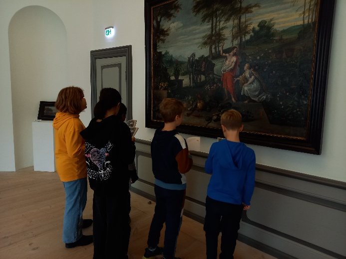 Für Kinder hat sich das Museum einen Kunstkrimi ausgedacht. „Kunstdetektive auf Zeitreise“. Wir mussten einen verschwundenen Professor finden. Wir sind in Vierer- oder Fünfer-Teams herumgegangen, haben Bilder gesucht, angeschaut, versteckte Hinweise entdeckt und so 6 Rätsel gelöst. Das hat Spaß gemacht.