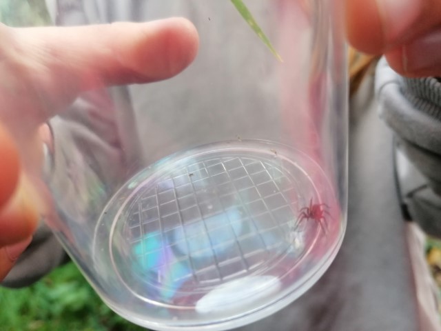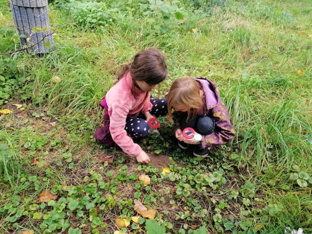 Auf der Streuobstwiese habe ich Apfelsaft getrunken und ich habe Äpfel gesammelt und ich habe Apfelsaft gemacht. Wir haben mit Becherlupen Tiere entdeckt, ich habe nichts entdeckt. Ich habe Vogeleier gesehen. Dann sind wir zur SKB gelaufen und die SKB Kinder sind reingegangen. Von Ella